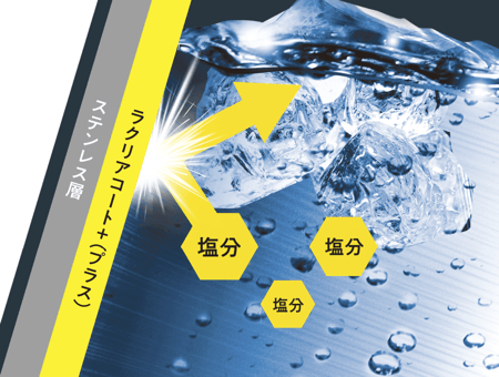 ラクリアコート+は耐食性が高いためサビにくく、塩分の入ったスポーツドリンクも安心して入れられます。