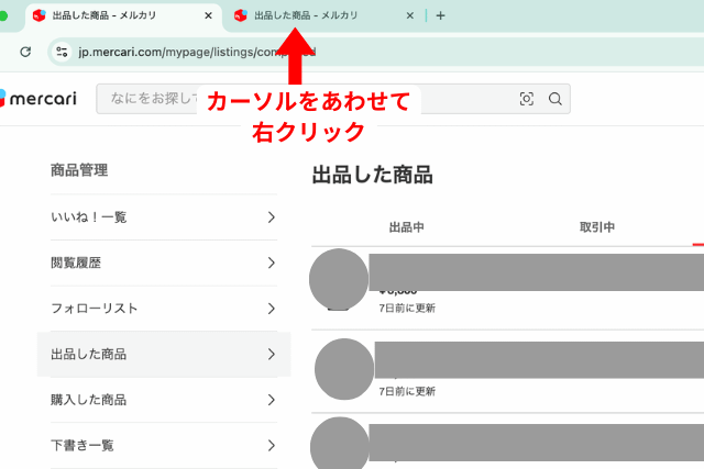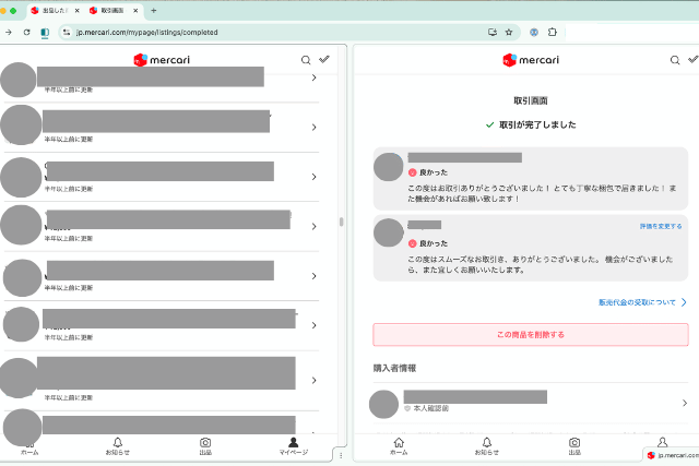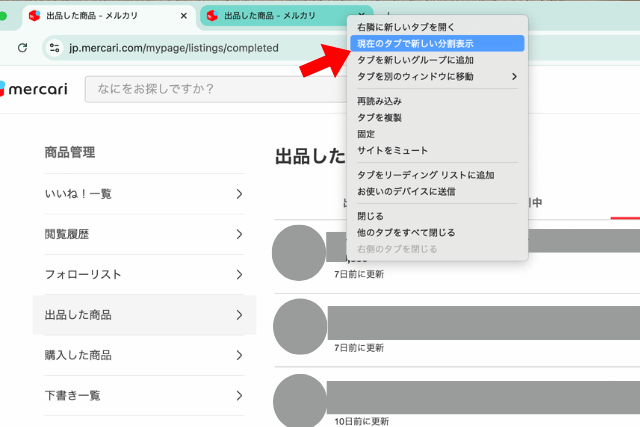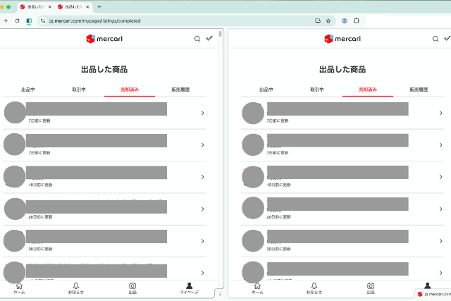 メルカリの販売済み商品を大量に削除するには、PCの分割ビューを使うと便利です。